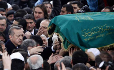 Rakyat Turki, termasuk para pemimpin politik di negara itu, memberikan penghormatan terakhir mereka pada hari Selasa kemarin (1/3) terhadap mantan Perdana Menteri Necmettin Erbakan, pendiri gerakan modern Islam di negara itu, yang meninggal pada hari Minggu lalu.