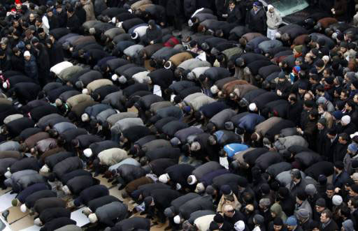 Jalan-jalan, atap dan balkon rumah di sekitar masjid penuh sesak dengan laki-laki mengenakan penutup kepala, dan perempuan, baik yang berjilbab ataupun tidak memakai jilbab - memberikan tanda hormat mereka kepada Erbakan. Beberapa pelayat membawa bendera Palestina.