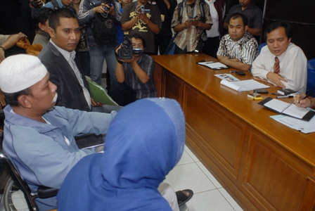 Didampingi keluarga dan pengacaranya, Ustadz Uci mengadukan apa yang ia alami selama masa penyekapan di makam Mbak Priok beberapa waktu lalu.