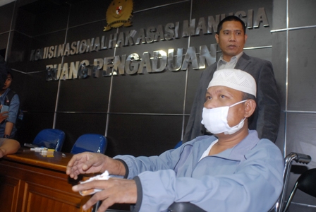 Korban kekerasan yang dilakukan oleh oknum preman di makam Mbak Priok, Jakarta Utara, Ustadz Nur Yusuf (Uci) mengadu ke Komnas HAM di Jakarta.