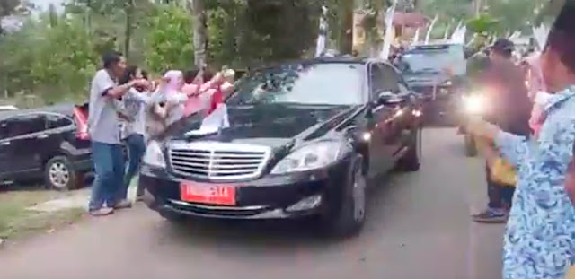 Dalam video tersebut, terlihat ratusan warga berdiri di tepi jalan menyambut kedatangan Presiden Jokowi bersama rombongan.