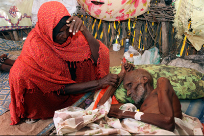 Duba Dagane sedang berusaha membantu suaminya, Abdi Ibrahim yang menderita kelaparan dan krisis gizi di sebuah pengungsian di Kenya.