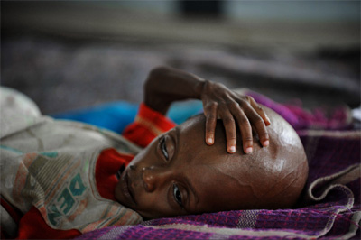 Abdul Fatah Hasan, bocah usia 11 bulan sedang menanti pelayanan kesehatan di sebuah pengungsian di Kenya. Seperti umumnya balita Somalia, Fatah menderita krisis gizi dan kelaparan.